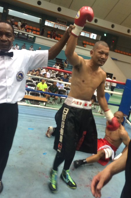初回、2回とダウンを奪われるも、ボディを攻め、右フックカウンターで逆転ワンパンチKO勝利!